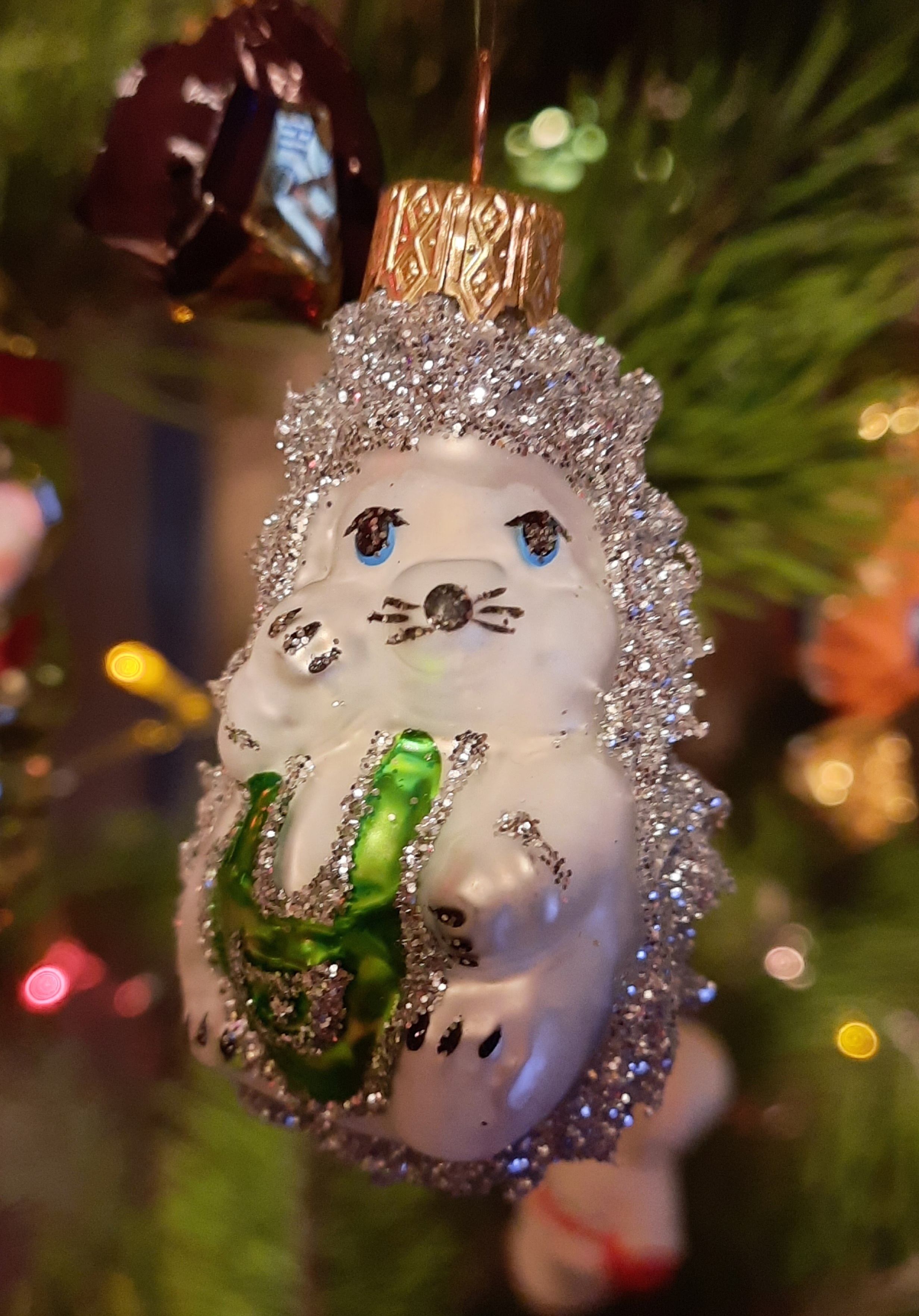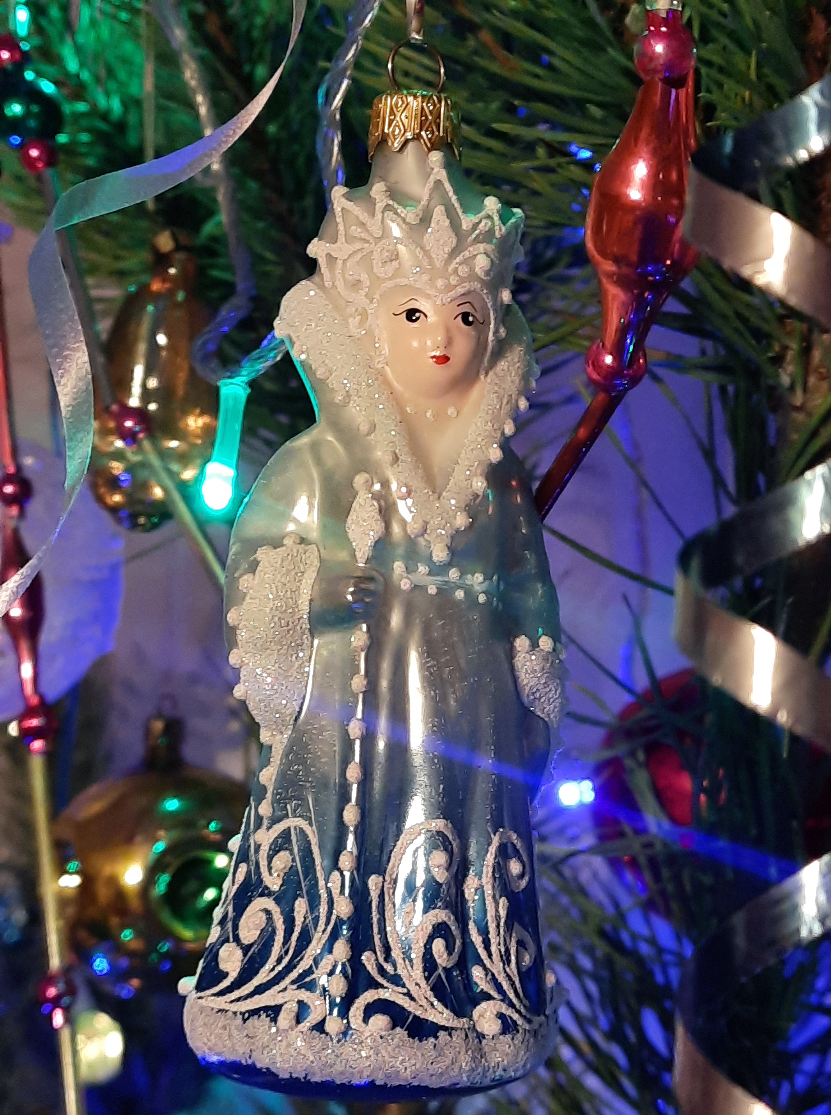 Я так же бережно стараюсь хранить все игрушки и тоже каждый год покупаю новых 1-2 штучки, только елку всегда наряжаю живую. В этом году новыми игрушками стали Снежная королева и ежик (какой же он блестючий, фото не передает)