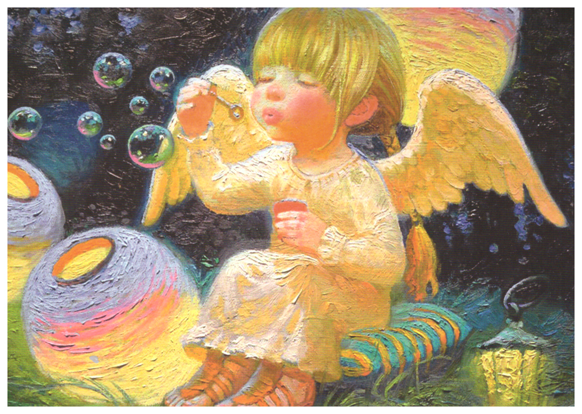 пускает мыльные пузыри, смотрит на небо, смеется, мечтает.