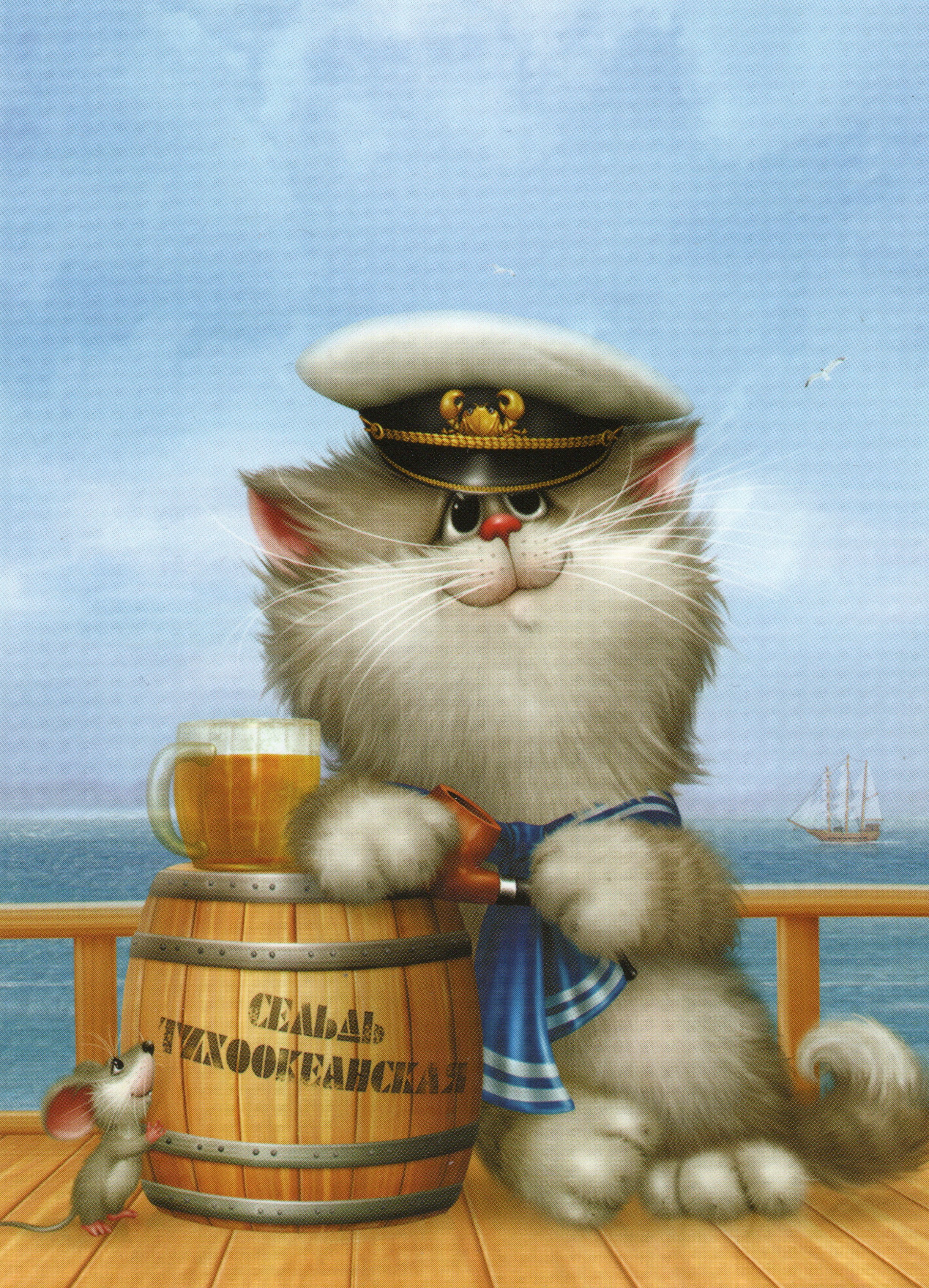 сегодня будет простая загадка...на открытке кот, он что-то держит в лапах..вопрос - Что кот держит в лапах?